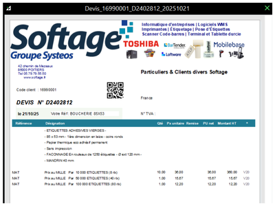 Pour accompagner cette transition, Softage propose désormais un module innovant pour Sage 100c, permettant d’ajouter un ou plusieurs QR Codes sur vos documents Sage, qu’il s’agisse de devis, bons de livraison, factures ou étiquettes.